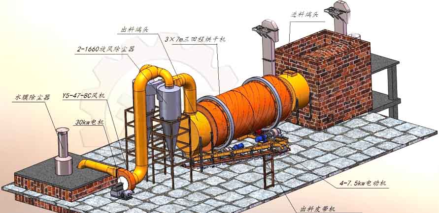 礦石烘干機機械化程度高,整條生產線3~5人就可以完成對設備的操作,操作方便簡單,自動化運行。